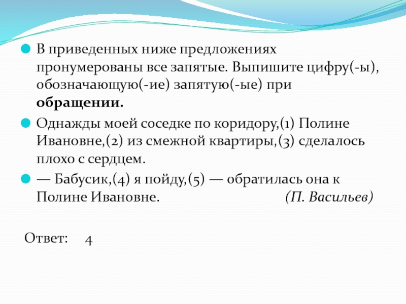 Слайд 76В приведенных ниже предложениях пронумерованы все запятые. Выпишите цифру(-ы), обозначающую(-ие)