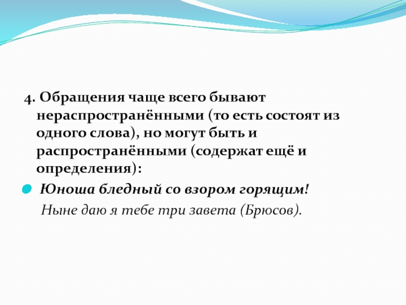 Слайд 694. Обращения чаще всего бывают нераспространёнными (то есть состоят из