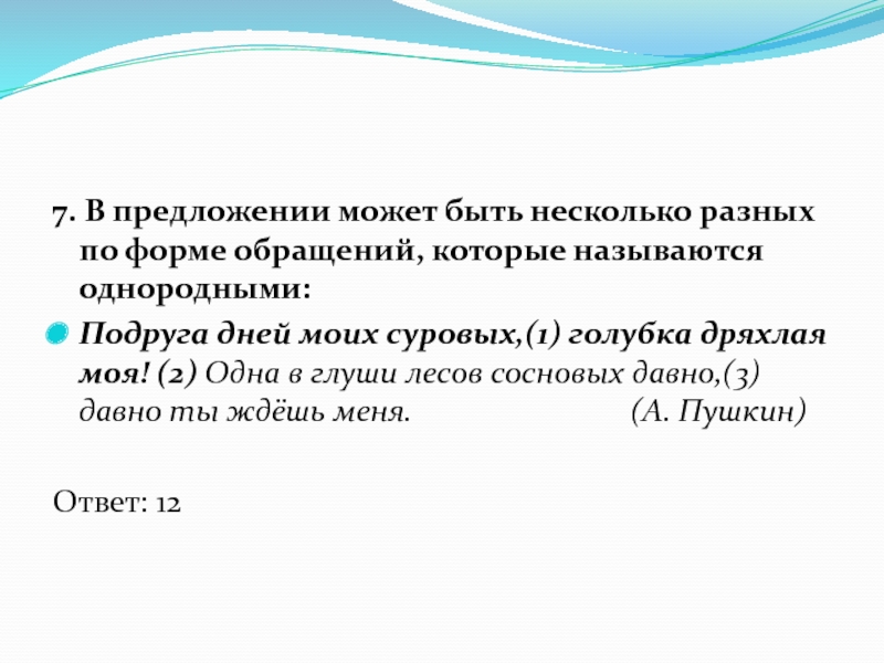 Слайд 727. В предложении может быть несколько разных по форме обращений,