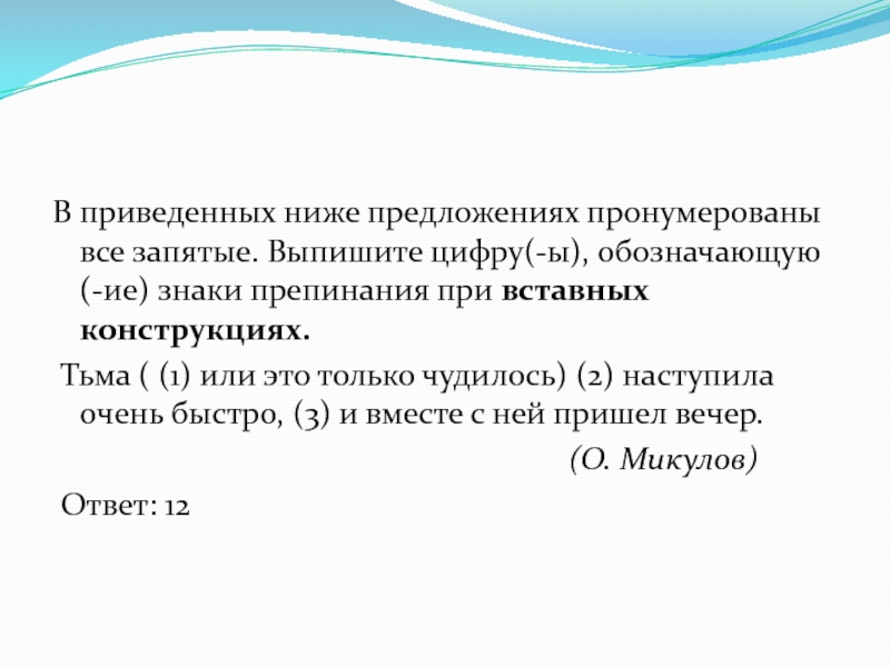 Слайд 80В приведенных ниже предложениях пронумерованы все запятые. Выпишите цифру(-ы), обозначающую(-ие)