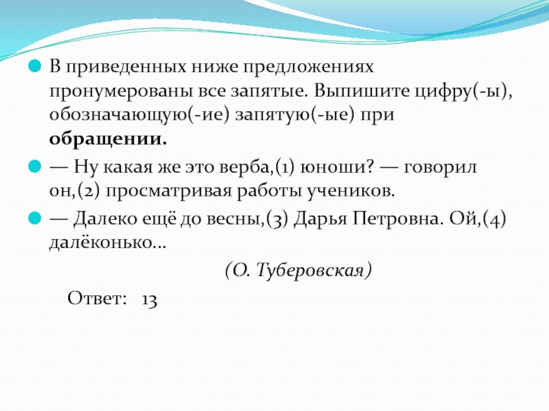 Слайд 81В приведенных ниже предложениях пронумерованы все запятые. Выпишите цифру(-ы), обозначающую(-ие)