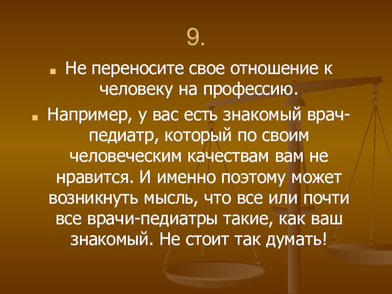 Не переносите свое отношение к человеку на профессию.