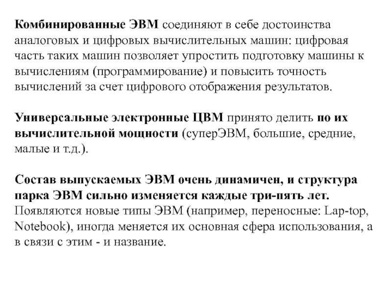 Слайд 23Комбинированные ЭВМ соединяют в себе достоинства аналоговых и цифровых вычислительных