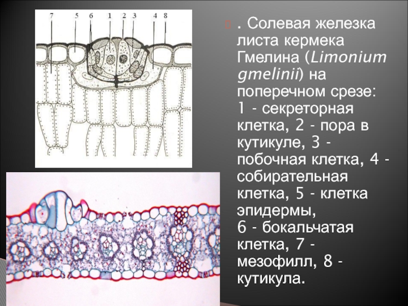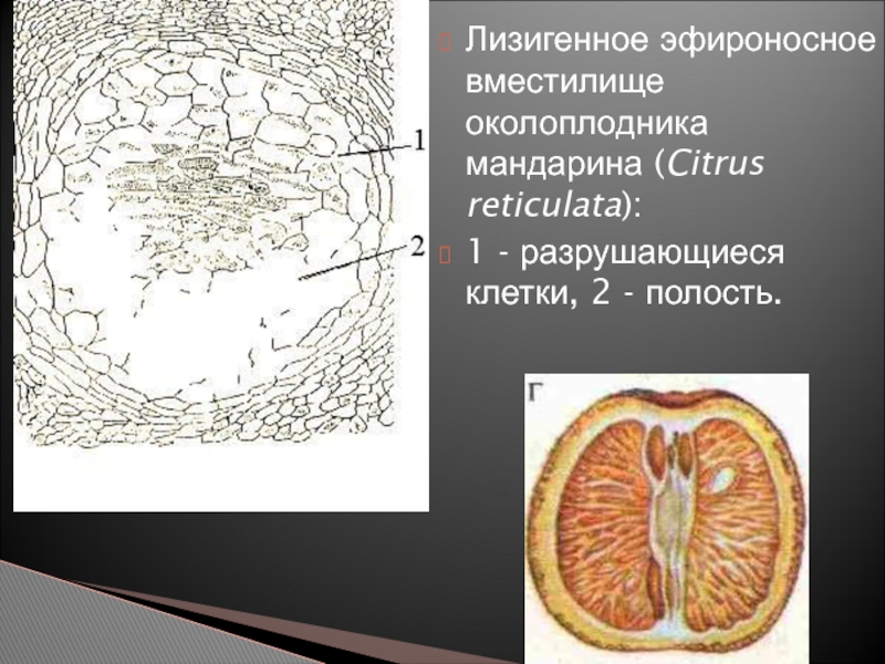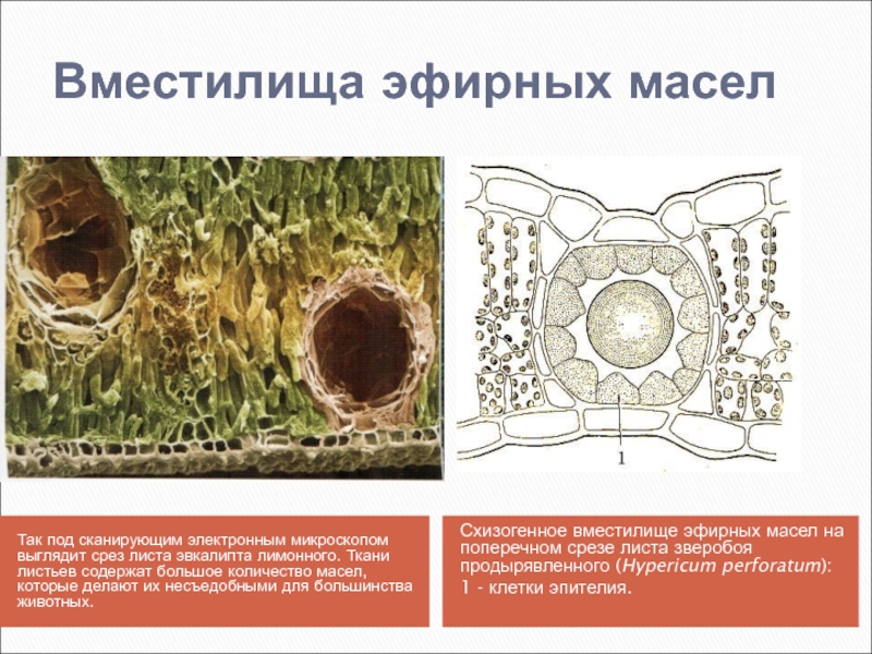 Схизогенное вместилище эфирных масел на поперечном срезе листа зверобоя продырявленного (Hypericum perforatum):