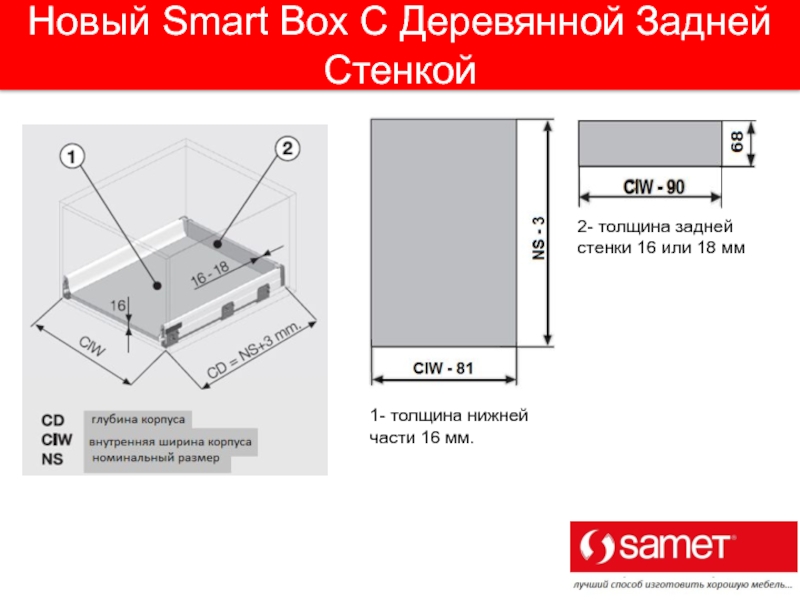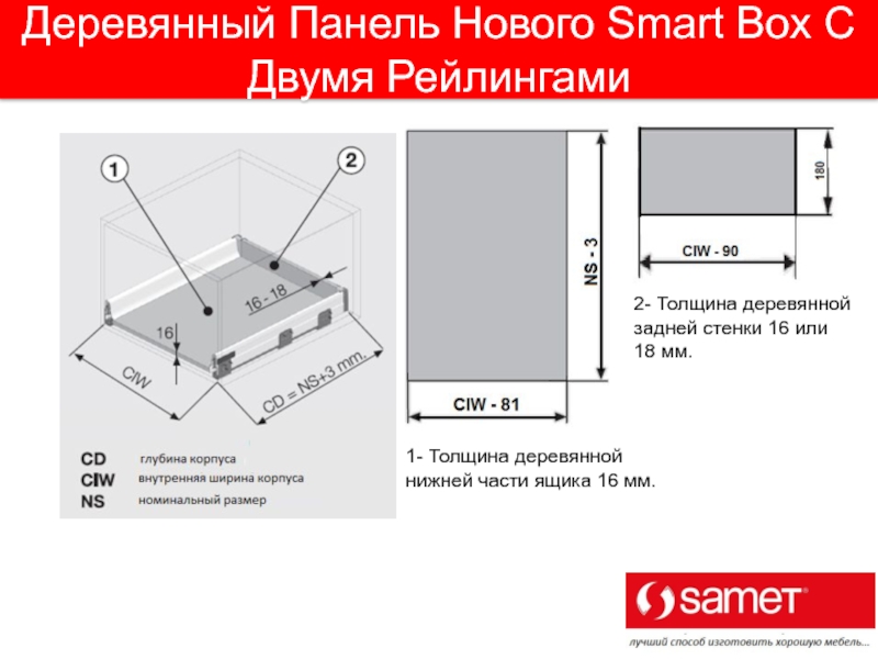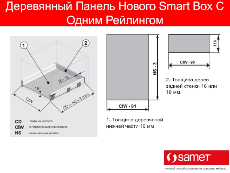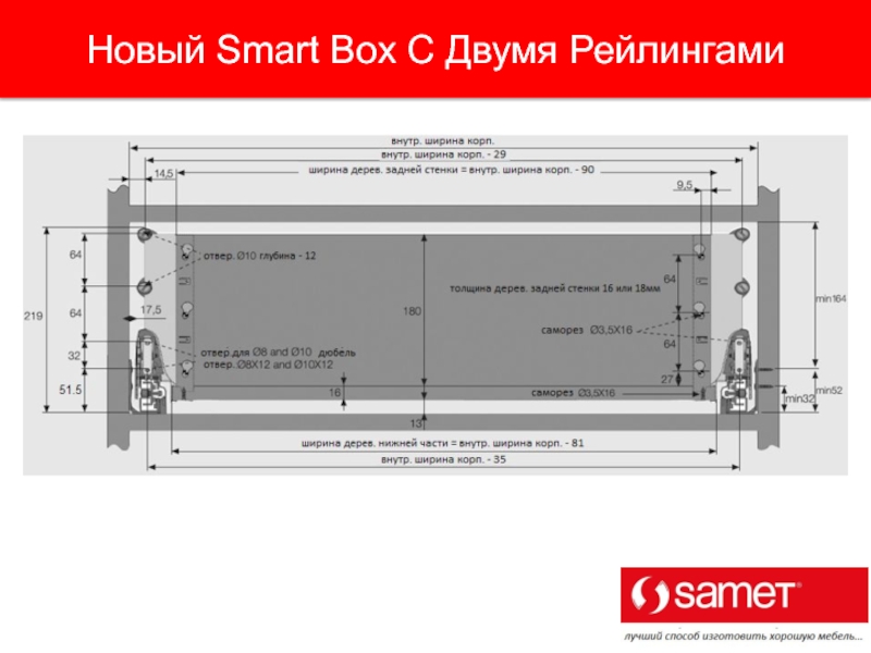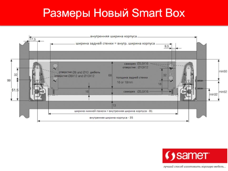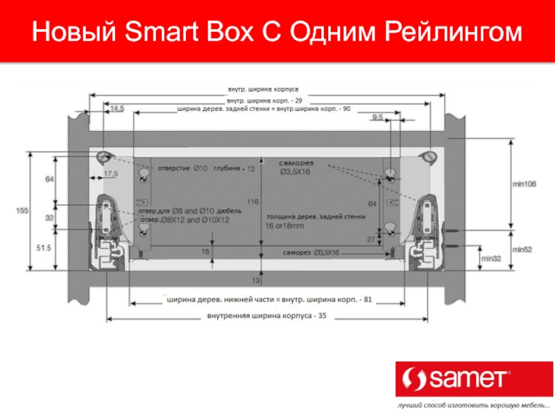 Слайд 106Размеры Дерев. Нижний Части Smart Box