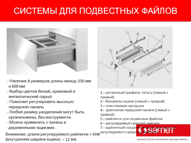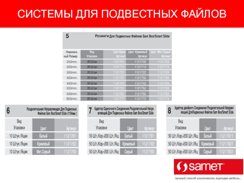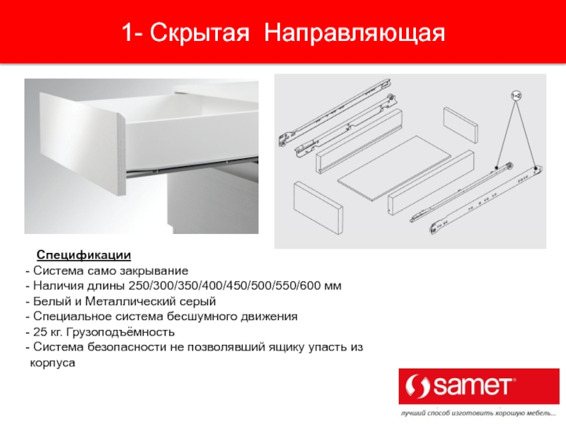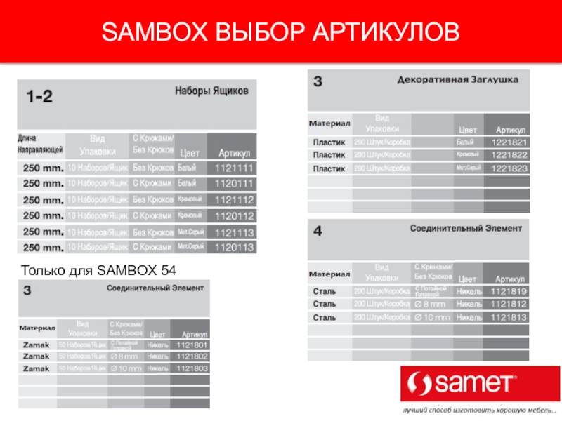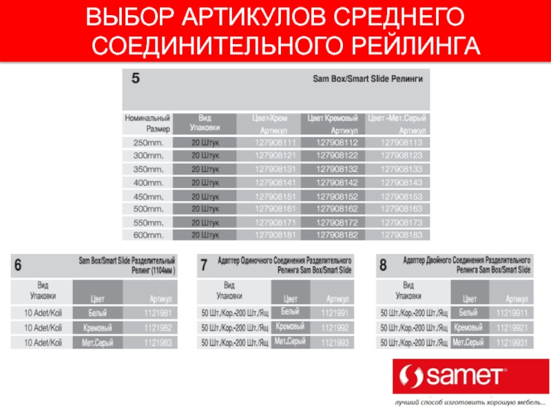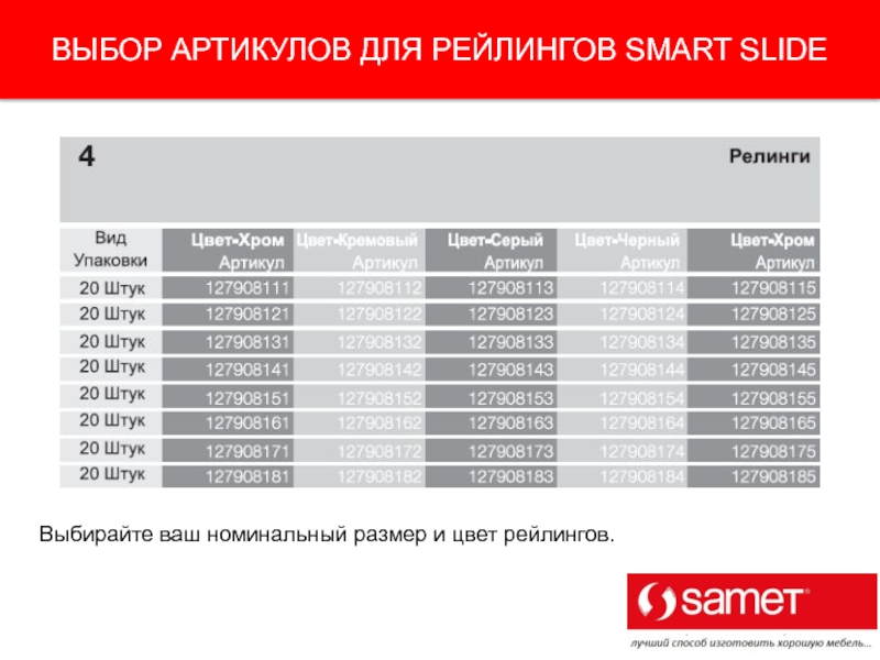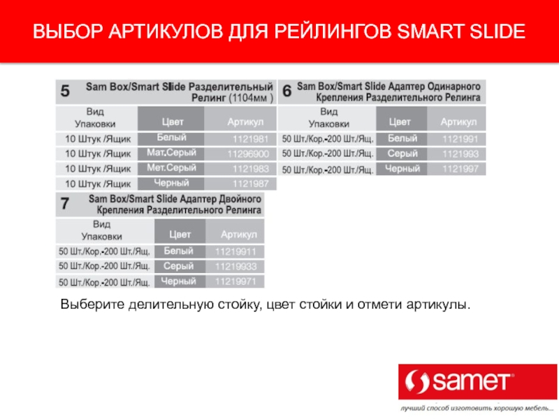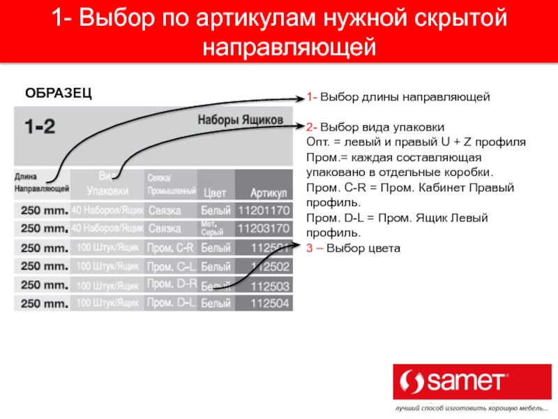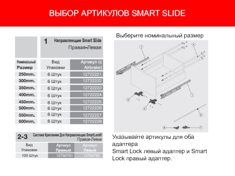 Слайд 51- Выбор по артикулам нужной скрытой направляющей