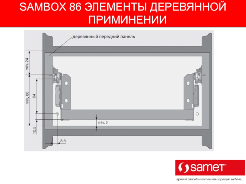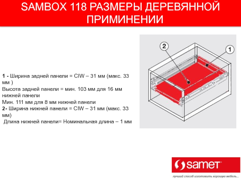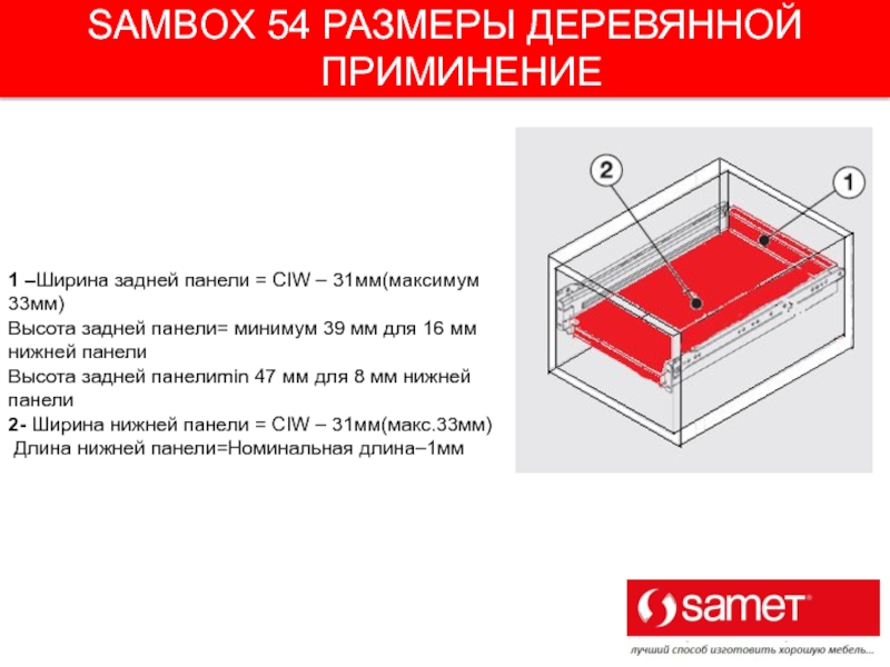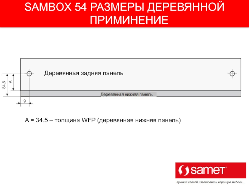 Слайд 13SAMBOX 54 РАЗМЕРЫ ДЕРЕВЯННОЙ ПРИМИНЕНИЕ