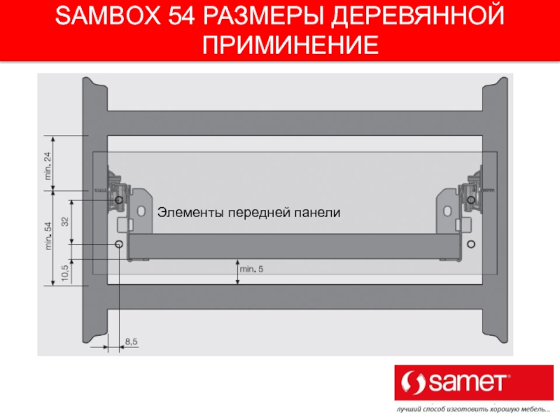 Слайд 15SAMBOX 54 РАЗМЕРЫ ДЕРЕВЯННОЙ ПРИМИНЕНИЕ