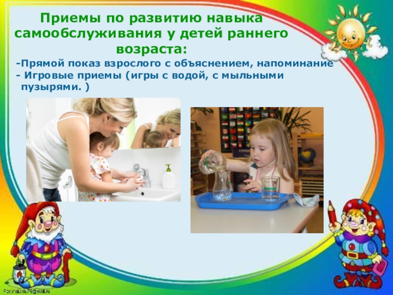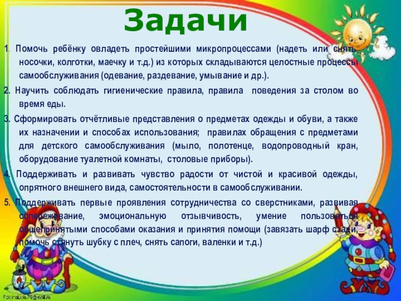 Для ребёнка третьего года жизни самообслуживание включает в себя освоение следующих навыков: