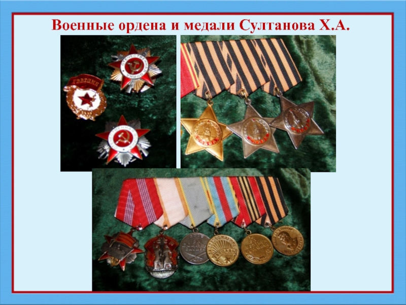 Слайд 17Военные ордена и медали Султанова Х.А.