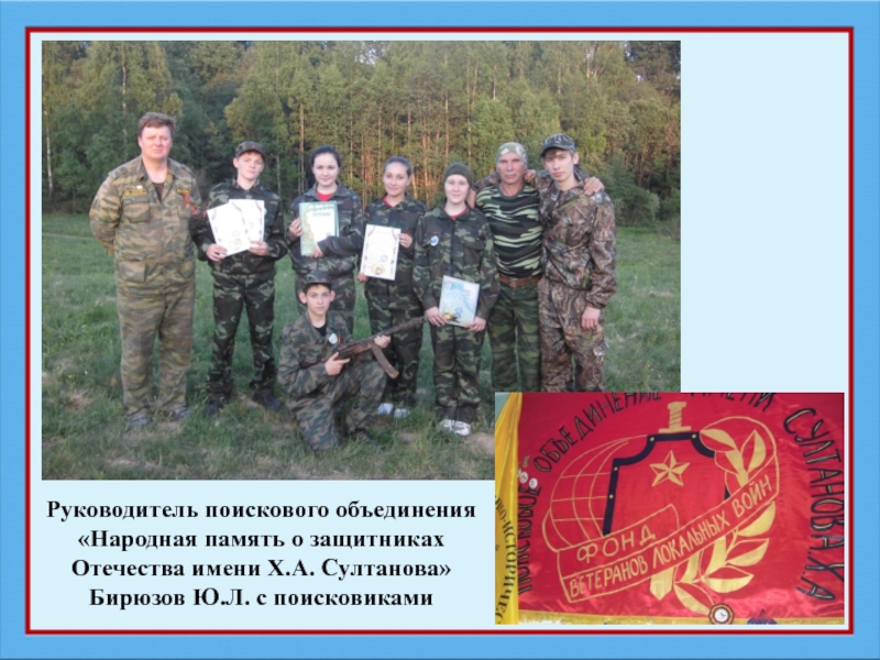 Руководитель поискового объединения «Народная память о защитниках Отечества имени Х.А. Султанова»Бирюзов Ю.Л. с поисковиками