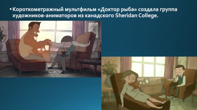 Слайд 6Короткометражный мультфильм «Доктор рыба» создала группа художников-аниматоров из канадского Sheridan
