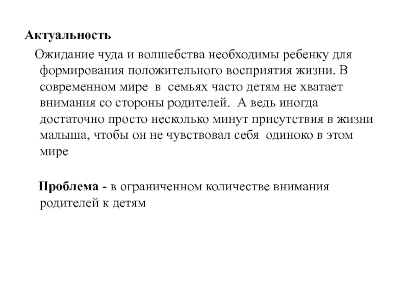 не хватает внимания со стороны родителей. А ведь иногда достаточно просто несколько минут присутствия в жизни малыша, чтобы он не чувствовал себя одиноко в этом миреПроблема - в ограниченном количестве внимания родителей к детям