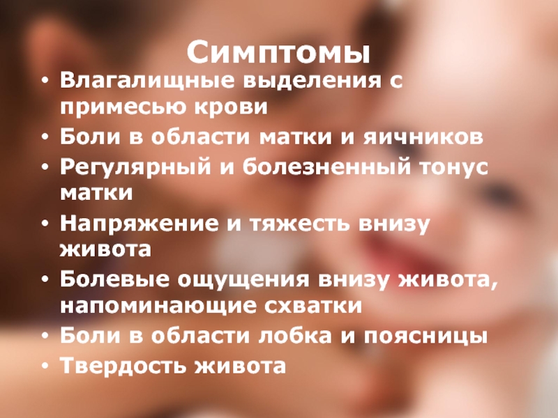 Угрожающий аборт - повышение сократительной активности матки; плодное яйцо