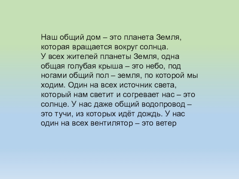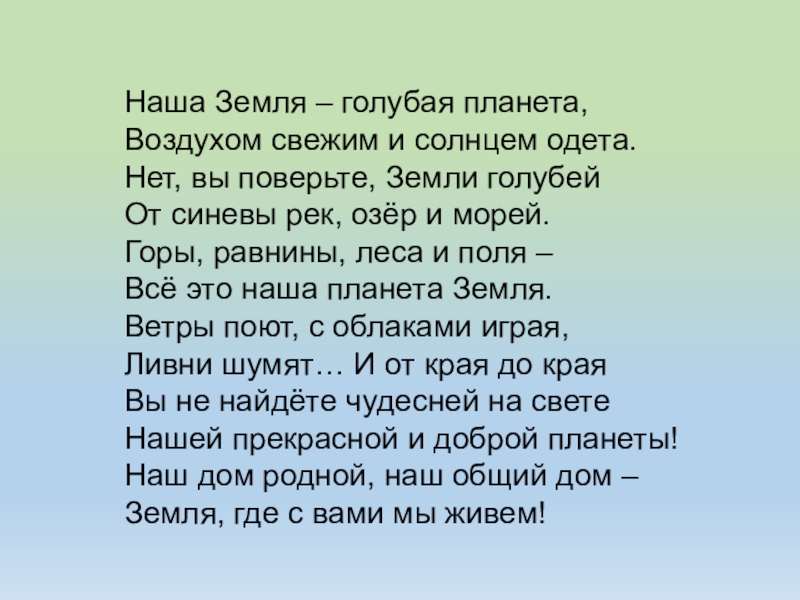 Наш дом родной, наш общий дом – Земля, где с вами мы живем!