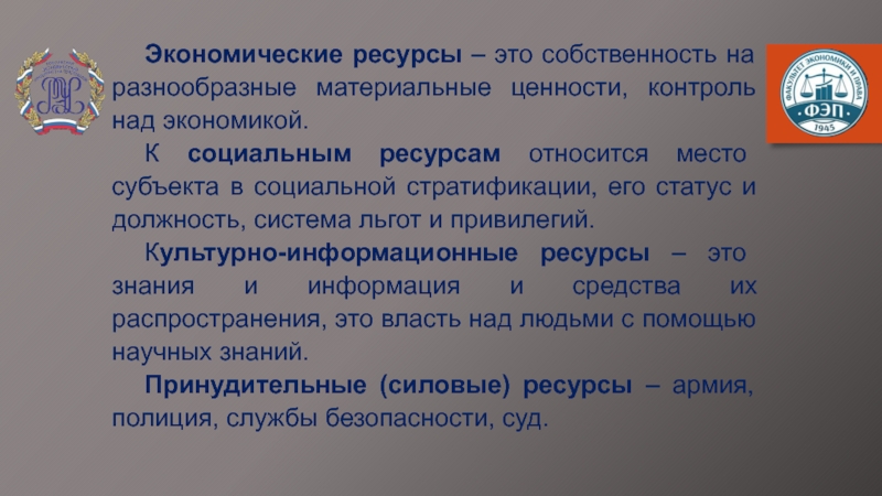 Ресурсы власти – это реальные возможности, средства власти, которые она располагает и применяет в процессе осуществления своих полномочий.