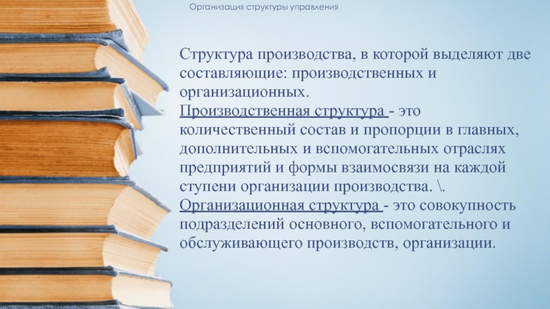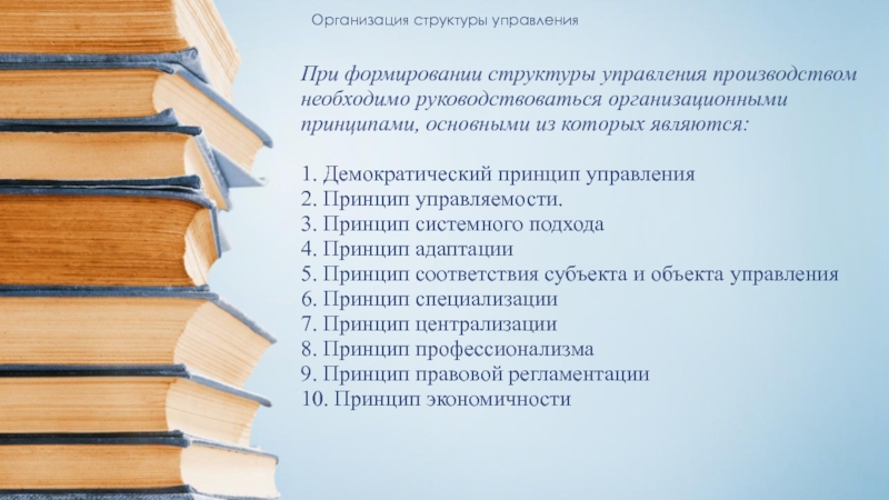 При формировании структуры управления производством необходимо руководствоваться организационными