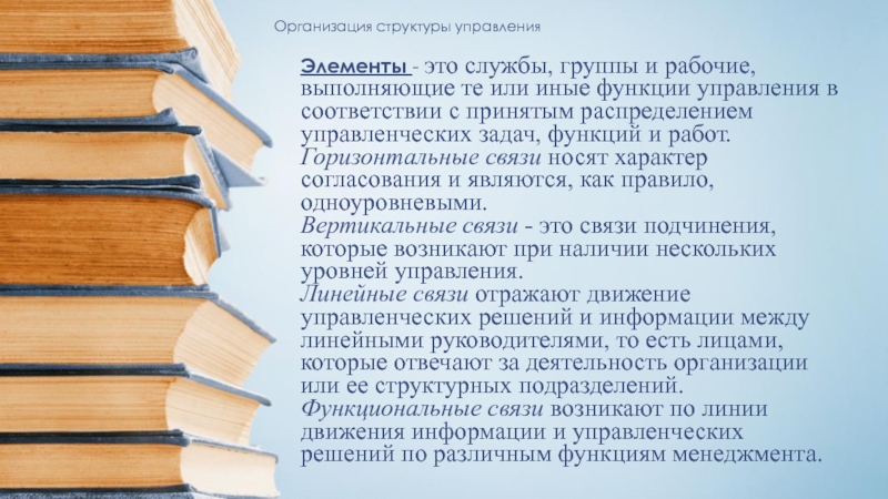 Вертикальные связи - это связи подчинения, которые возникают при наличии нескольких уровней управления.