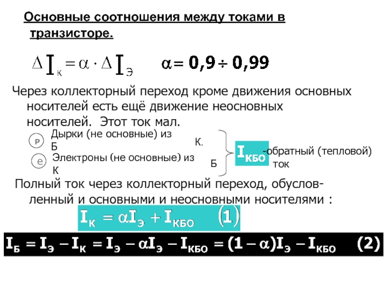 Слайд 20 Основные соотношения между токами в транзисторе.
