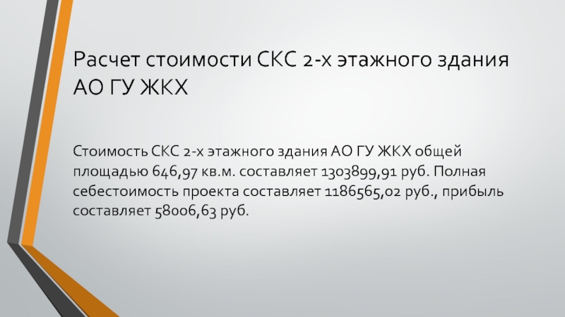 Слайд 14Расчет стоимости СКС 2-х этажного здания АО ГУ ЖКХ