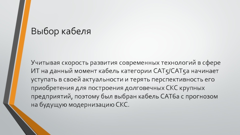 и терять перспективность его приобретения для построения долговечных СКС крупных предприятий, поэтому был выбран кабель CAT6a с прогнозом на будущую модернизацию СКС.