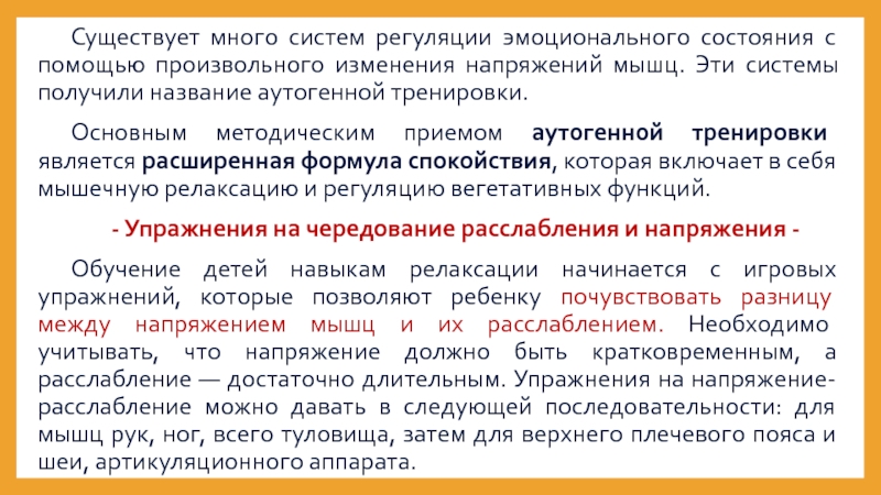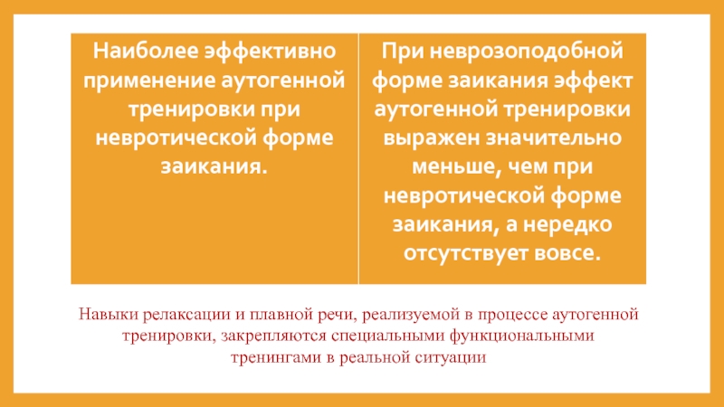 Слайд 10Навыки релаксации и плавной речи, реализуемой в процессе аутогенной тренировки,