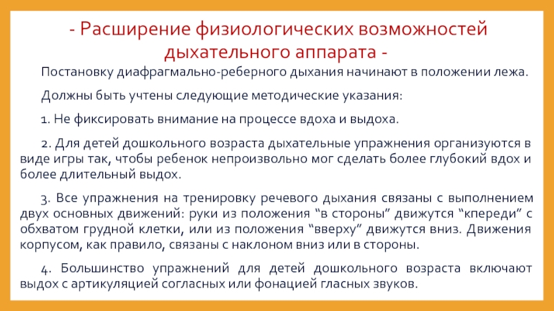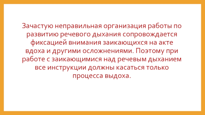 Слайд 21Зачастую неправильная организация работы по развитию речевого дыхания сопровождается фиксацией