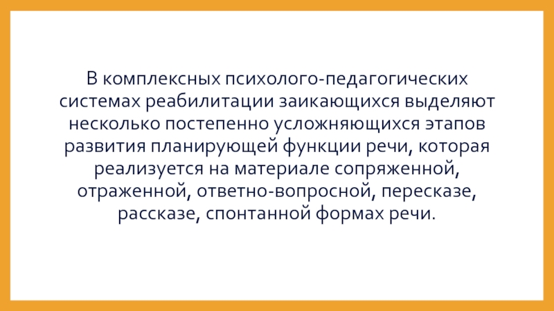 Слайд 29В комплексных психолого-педагогических системах реабилитации заикающихся выделяют несколько постепенно усложняющихся