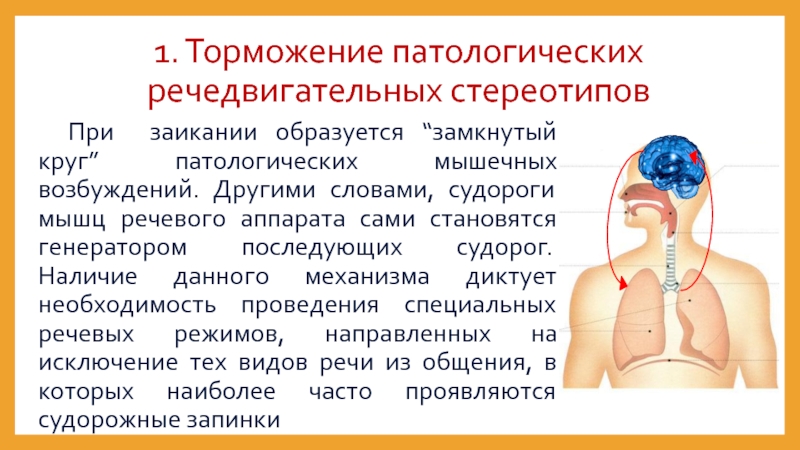 Слайд 41. Торможение патологических речедвигательных стереотипов