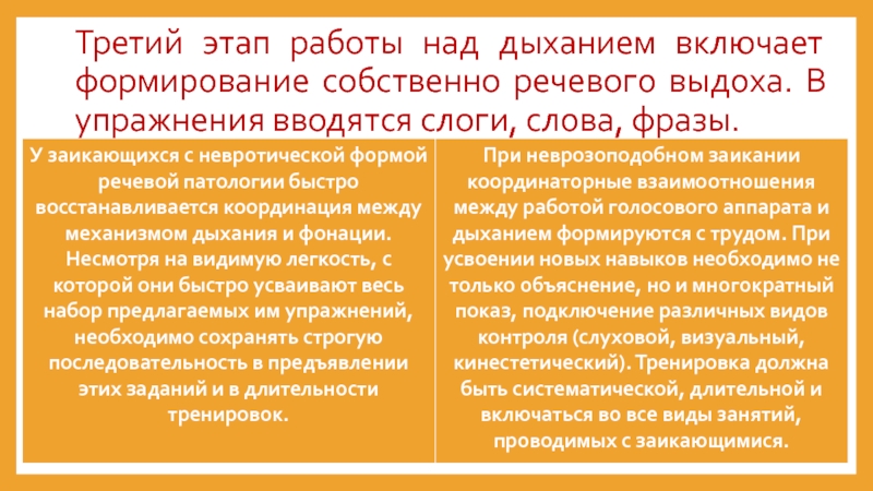 Слайд 23Третий этап работы над дыханием включает формирование собственно речевого выдоха.