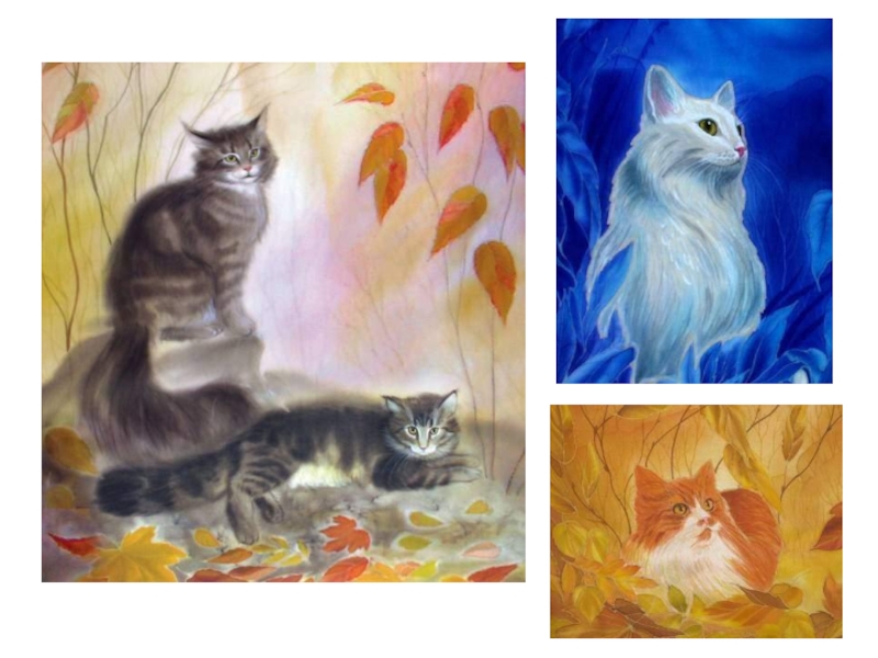 Слайд 9 через форму ушей, когти, усы, блеск глаз.