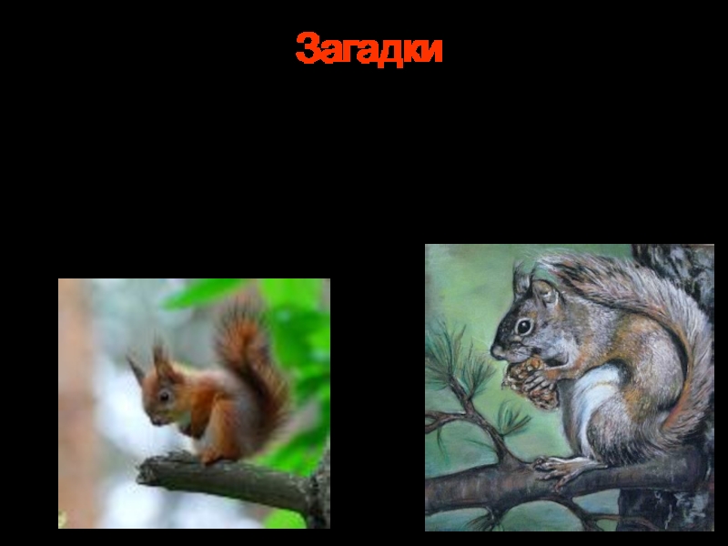 ЗагадкиКто по веткам ловко скачет,Кто влезает на дубы? Кто в дупле орешки прячет,Сушит на зиму грибы?