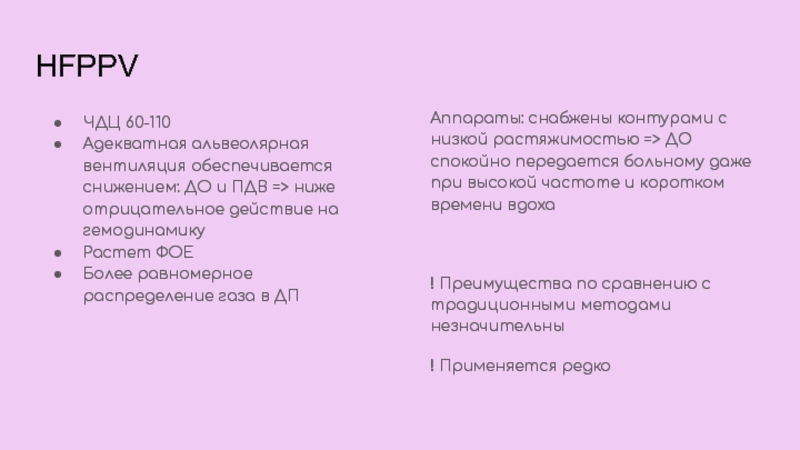 Аппараты: снабжены контурами с низкой растяжимостью => ДО спокойно передается больному даже при высокой частоте и коротком времени вдоха