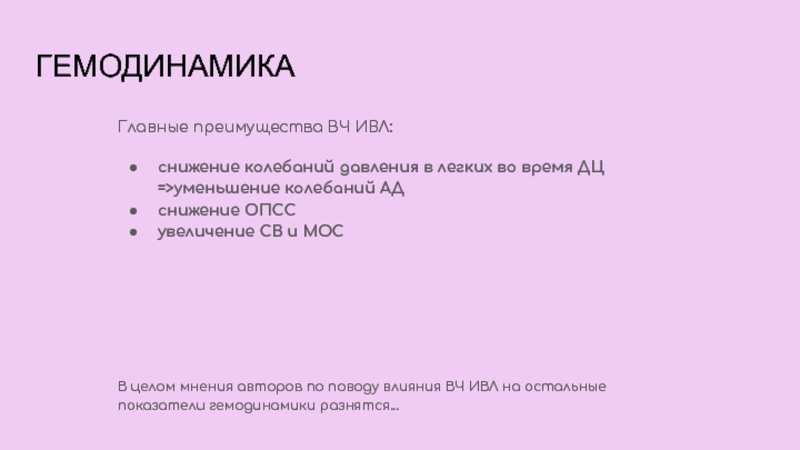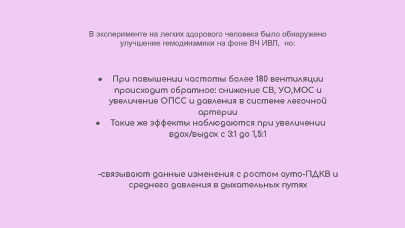 В эксперименте на легких здорового человека было обнаружено улучшение гемодинамики на фоне ВЧ ИВЛ, но:
