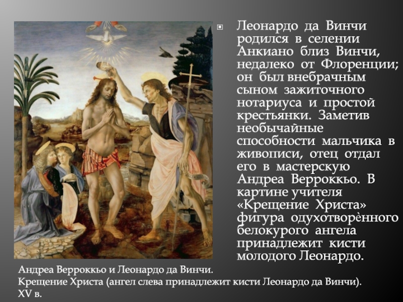 Крещение Христа (ангел слева принадлежит кисти Леонардо да Винчи). XV в.