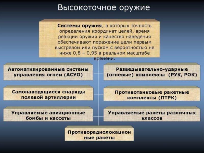 Виды высокоточного оружияОгнестрельное оружиеСтрелковое оружие артиллерийские комплексы управляемого вооружения
