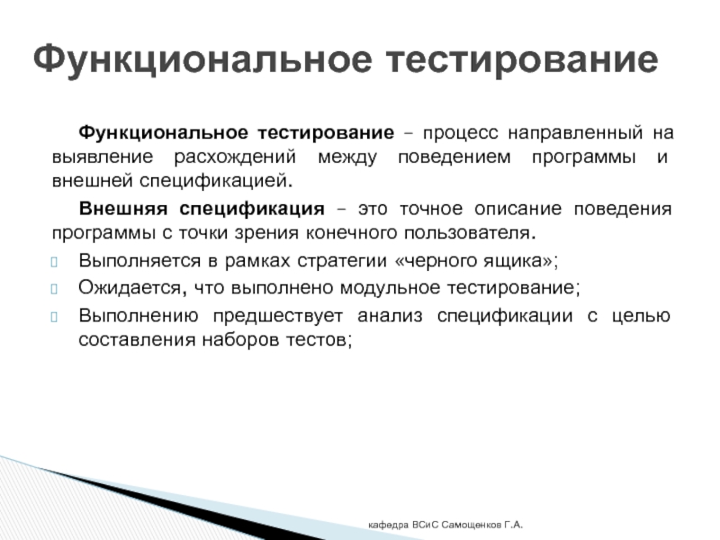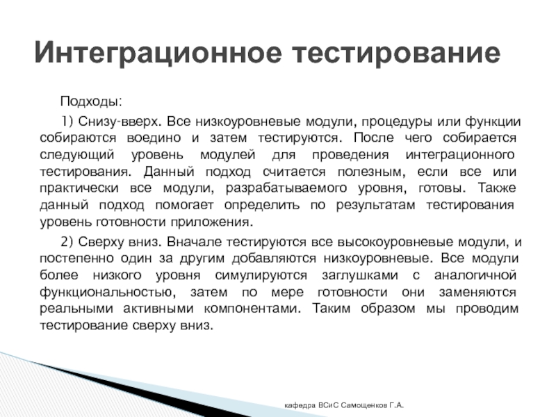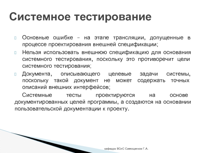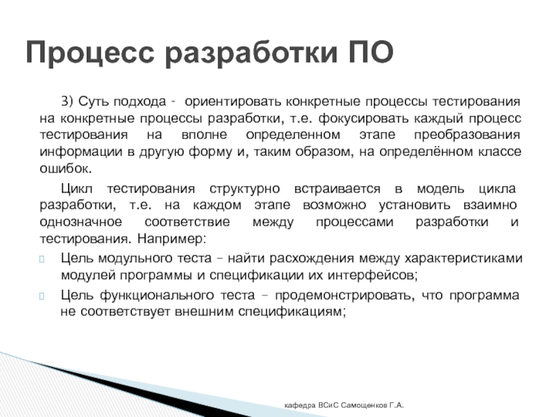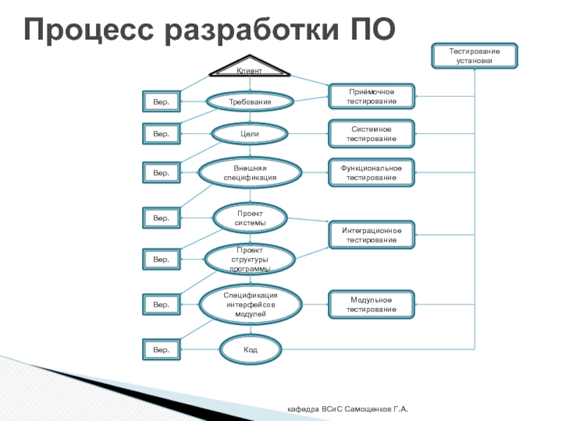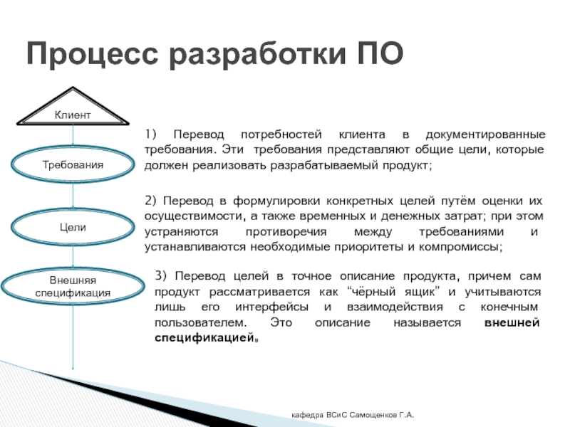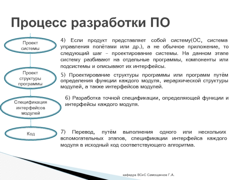 значительной степени представляет собой процесс передачи информации о том, что собой должна представлять конечная программа, и трансляции этой информации из одной формы в другую, от общего – к частному.кафедра ВСиС Самощенков Г.А.