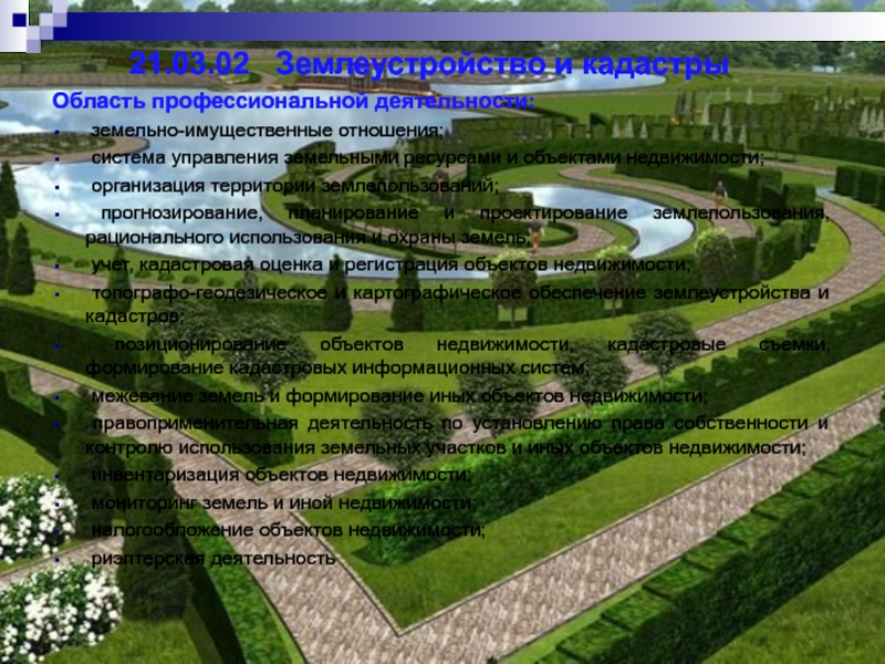 планирование и проектирование землепользования, рационального использования и охраны земель;