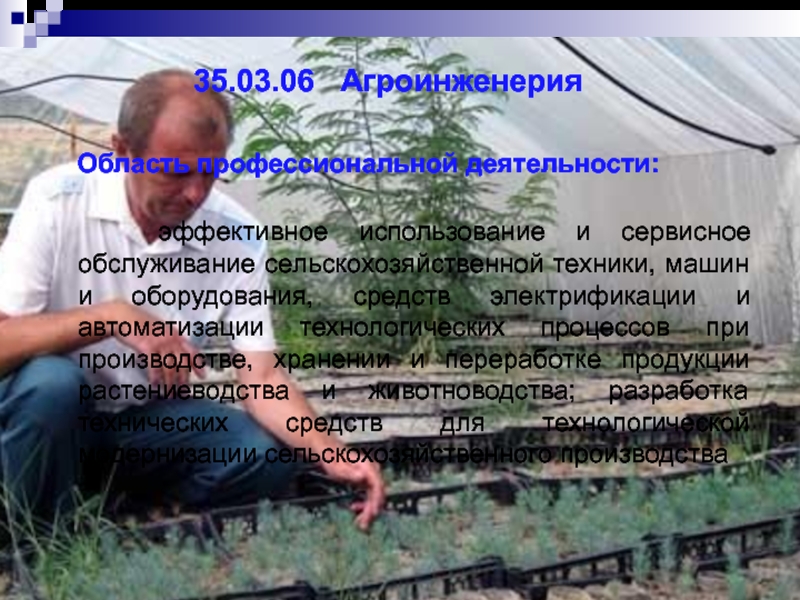автоматизации технологических процессов при производстве, хранении и переработке продукции растениеводства и животноводства; разработка технических средств для технологической модернизации сельскохозяйственного производства