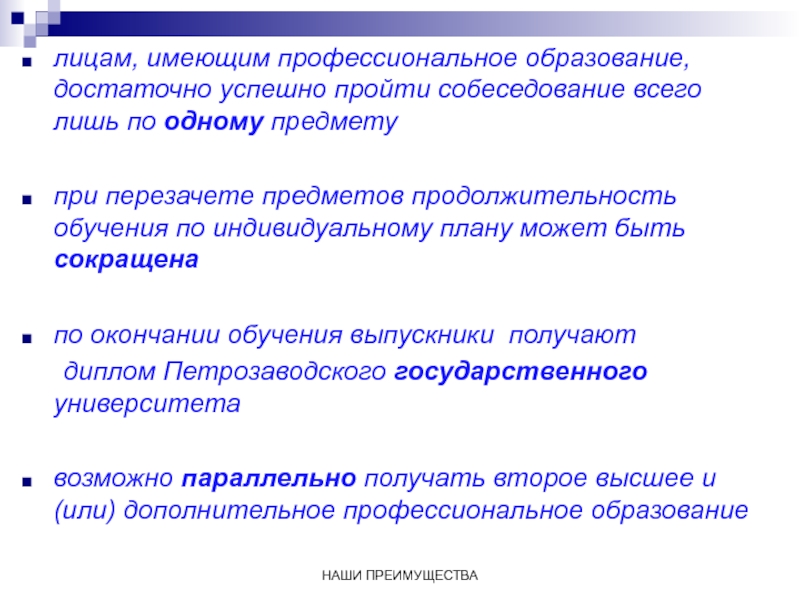 Слайд 36лицам, имеющим профессиональное образование, достаточно успешно пройти собеседование всего лишь