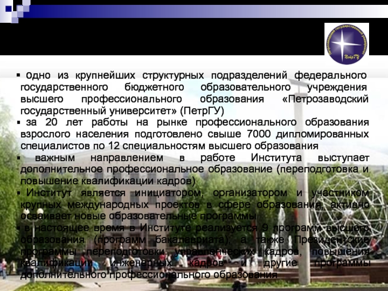 важным направлением в работе Института выступает дополнительное профессиональное образование (переподготовка и повышение квалификации кадров)