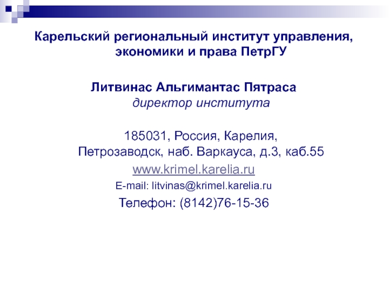 Слайд 42Карельский региональный институт управления, экономики и права ПетрГУ