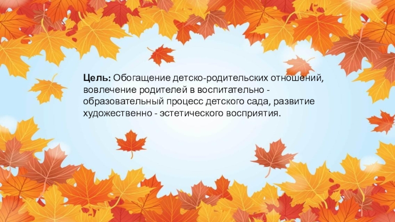 Слайд 3Цель: Обогащение детско-родительских отношений, вовлечение родителей в воспитательно - образовательный процесс