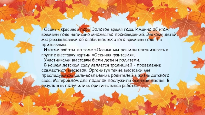 этом времени года написано множество произведений. Знакомя детей, мы рассказываем