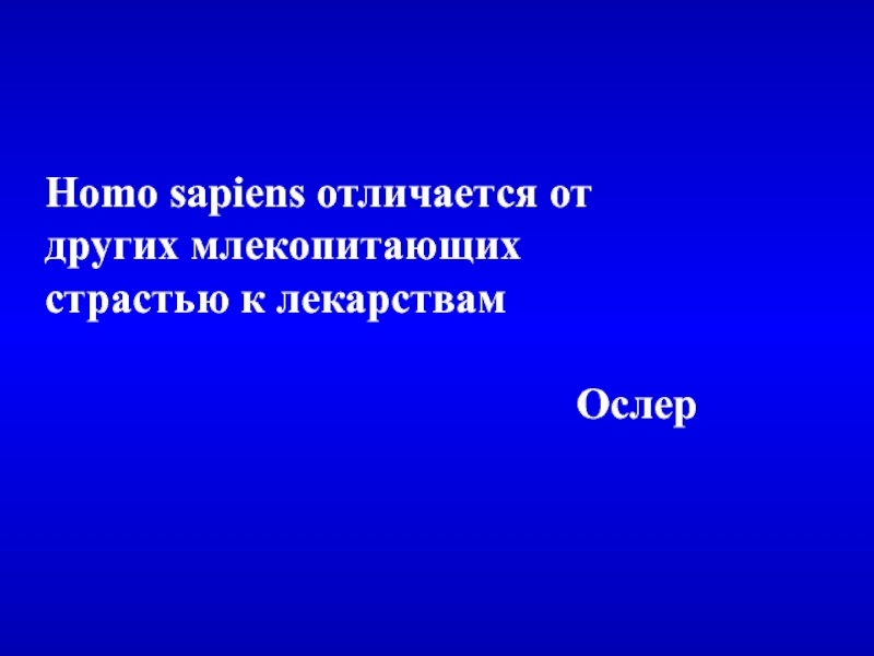 Слайд 2Homo sapiens отличается от других млекопитающих страстью к лекарствам