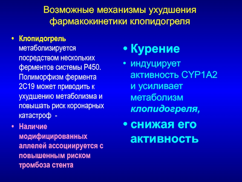 индуцирует активность CYP1A2 и усиливает метаболизм клопидогреля,