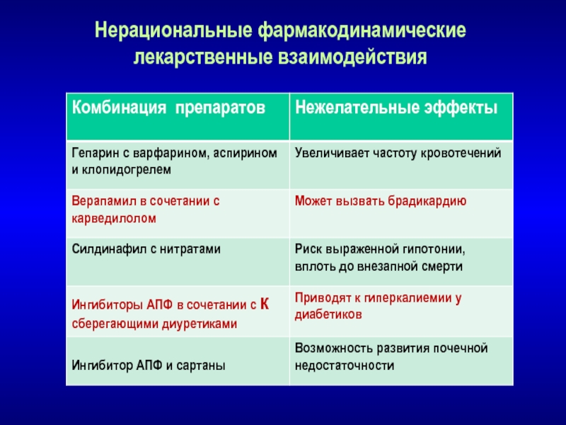 в определенных сочетаниях вызывают нежелательные эффекты,
