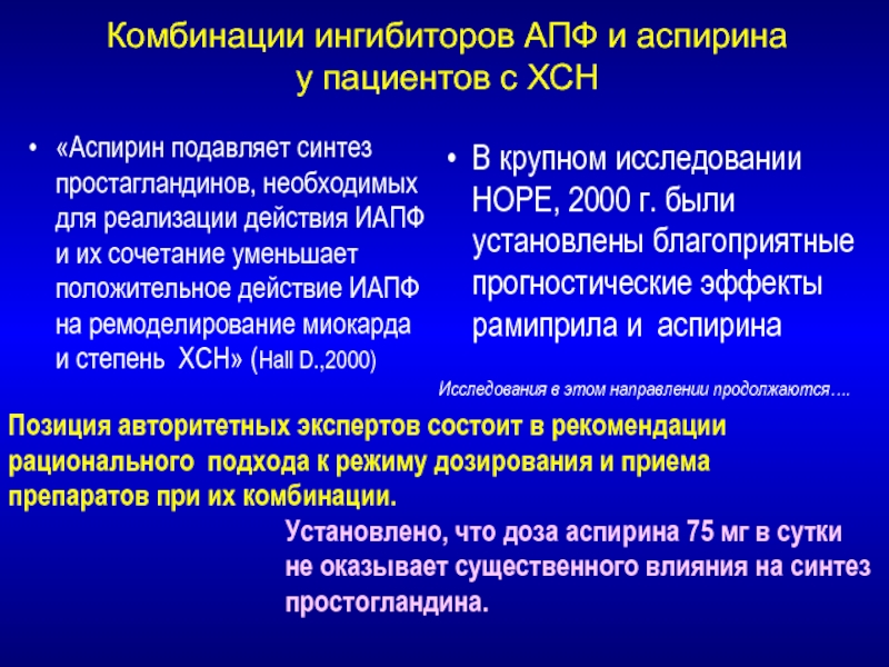 В крупном исследовании НОРЕ, 2000 г. были установлены благоприятные прогностические эффекты рамиприла и аспирина