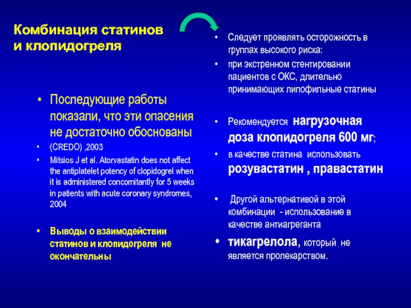 ослаблению антитромбоцитарного действия клопидогреля, к нейтрализации эффекта аторвастатина