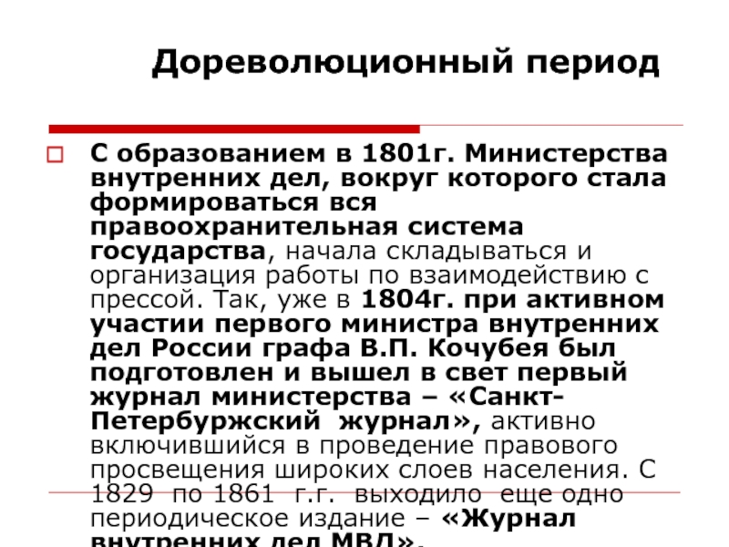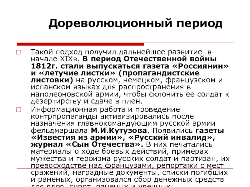 массовой информации в имперский период отечественной истории: тенденции и особенности.
